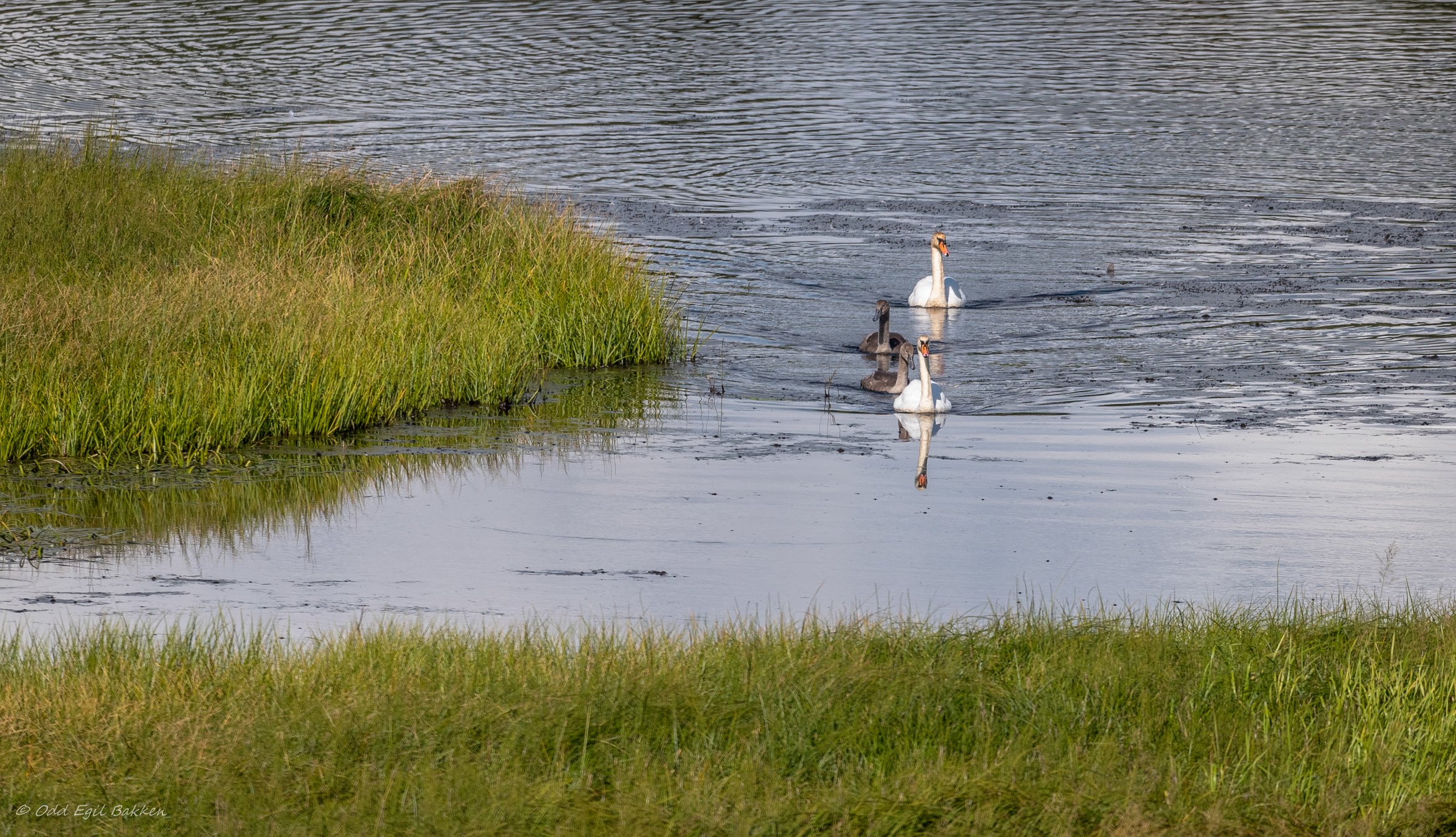 Knoppsvaner med to av fire unger