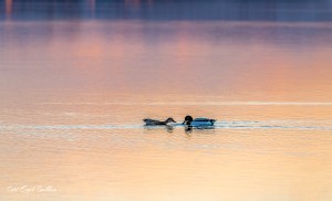 En kveldstur ved Mjøsas bredd kan fange mange fine stemninger. Nå var det våryre følelser hos stokkendene. Selv om det er veldig vanlige ender er de jo vakre, og i det flotte kveldslyset blir de ikke mindre vakre.