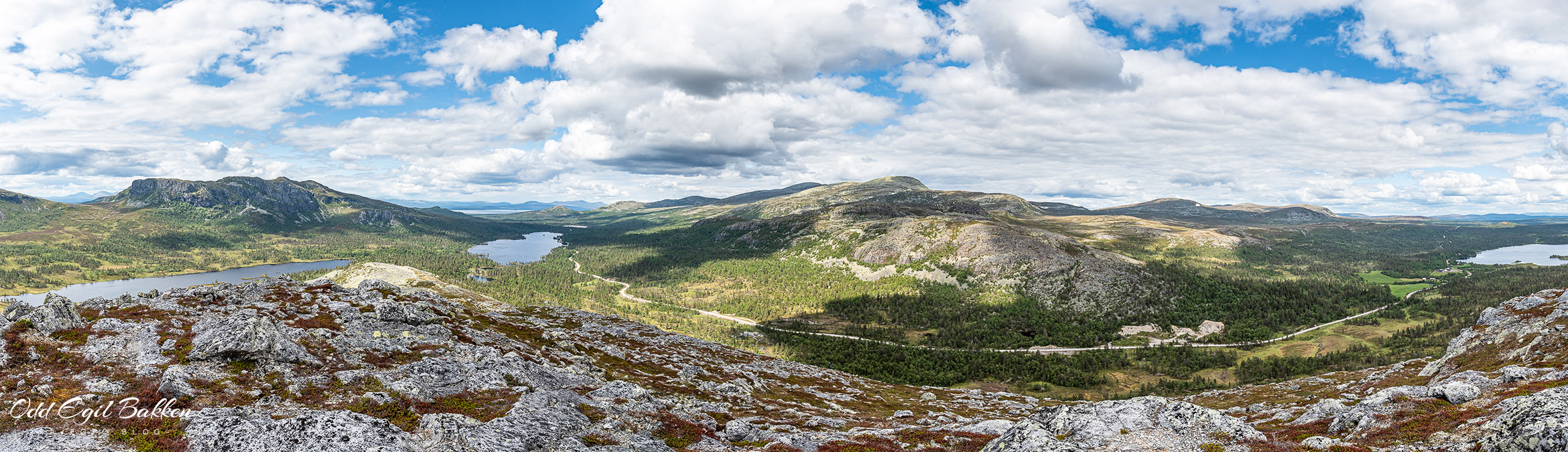 Panorama fra Herbensen, Båthusbergsjøen, Djupsjøen med Femund i bakgrunn, Fjellgutusjøen