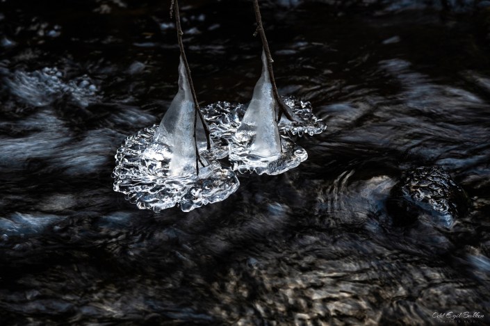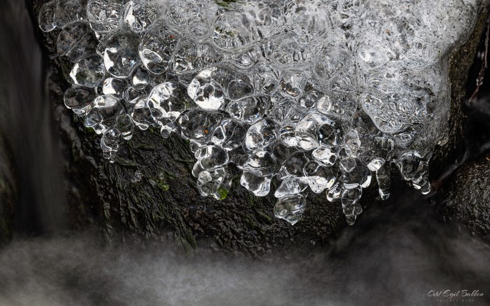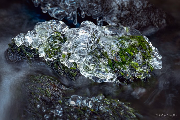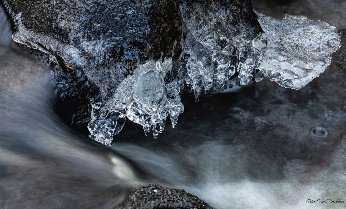De siste dagers kuldegrader har laget mye fin is i småvann og bekker. Isen er et takknemlig fotoobjekt som har et utall former og kan reflektere fantastiske farger litt avhengig av lysforhold og omgivelser. Det er i alle fall ingen tvil om at vinteren er på gang.