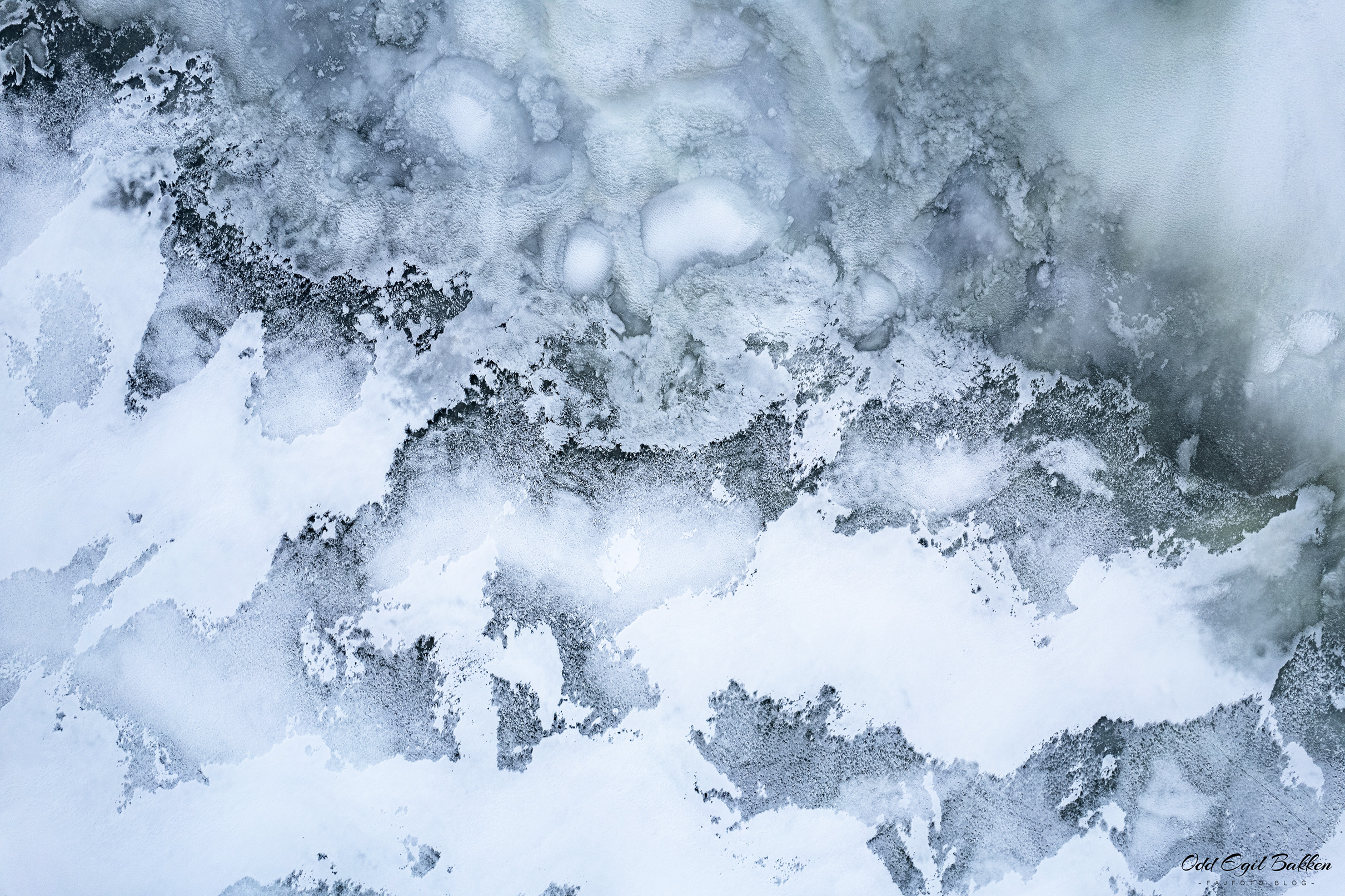 Ismønstre, dronefoto, ser du fuglen i venstre bildekant