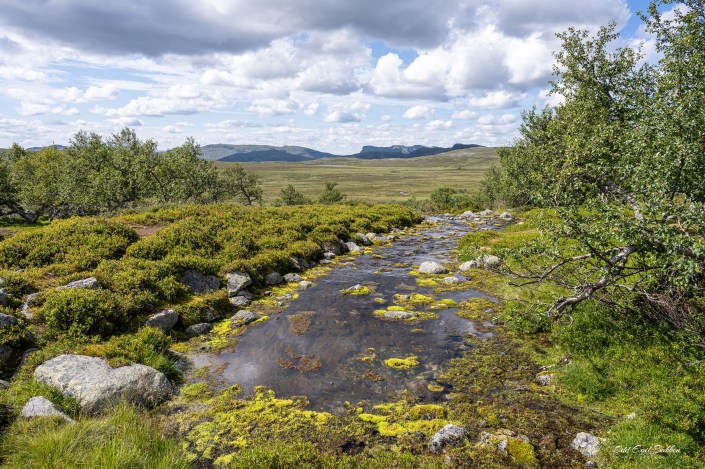 Veldig vekslende vær de dagene vi har vært på «hytta». I natt kom det skikkelig med regn og noe torden, men vi har da også hatt noen fine dager. En dag så vi etter multe på myra «vår», men det var et veldig dårlig resultat. I går gikk vi stien fra Valdalsfjellet mot Litl Grøvelsjøen i fint vær og fin temperatur. Her er noen bilder fra de siste dagene.